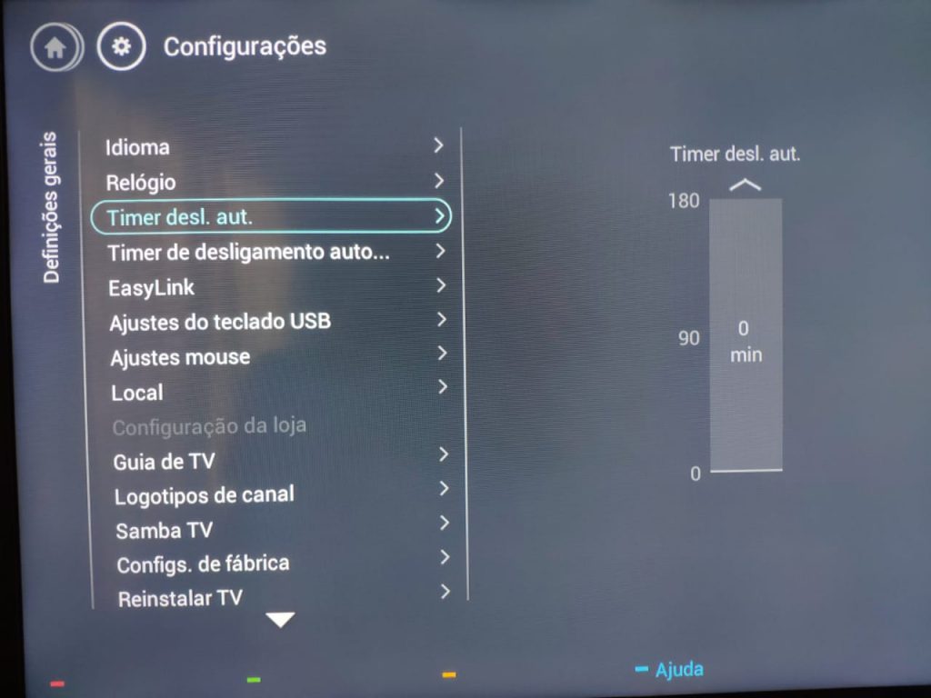 Esta função desliga o televisor após certa quantidade de tempo determinada pelo usuário, para desativá-la realize os passos a seguir: