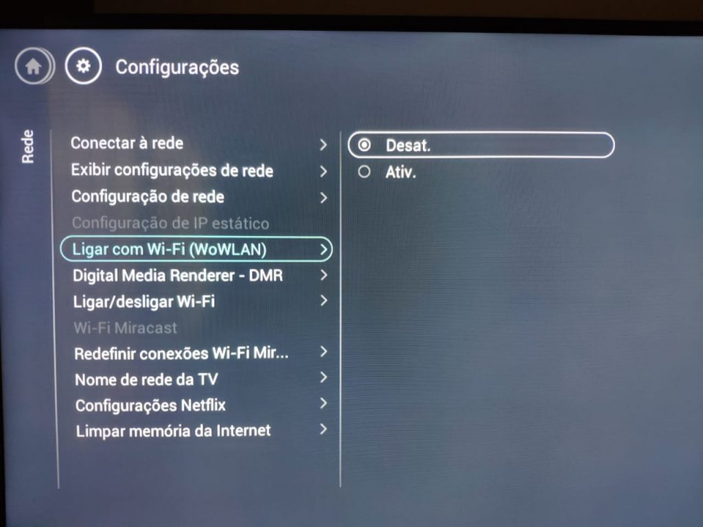 Nas configurações do dispositivo há uma opção que faz com que a televisão ligue assim que detectar o sinal de Wi-Fi pré-cadastrado anteriormente.