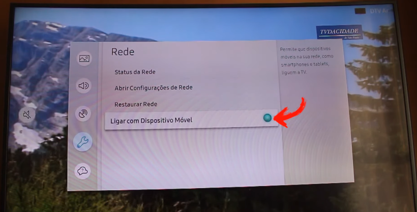 Agora busque por ‘Ligar com dispositivo móvel‘, ou ‘Ligar com Wi-Fi‘. Caso esta função esteja habilitada certamente será o motivo do televisor estar ligando sem o comando do usuário, desative a opção para cancelar esse método de inicialização.