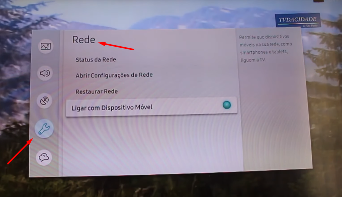 Acesse às configurações do seu televisor e vá até a opção de ‘Rede‘.