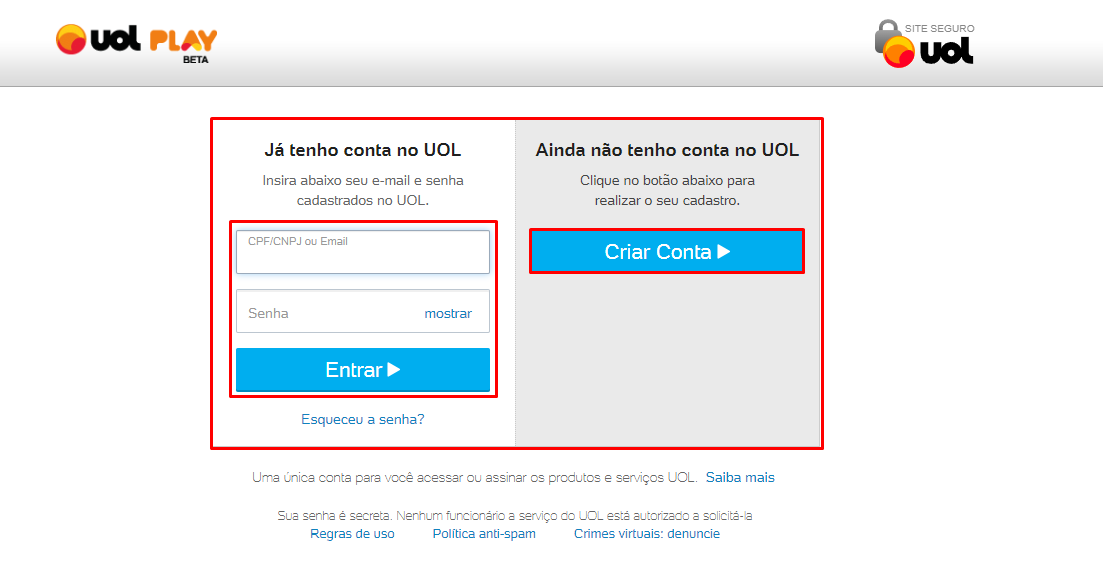 Para prosseguir com a contratação é preciso ter uma conta no UOL (pode ser a mesma que você usa para acessar os serviços da empresa).