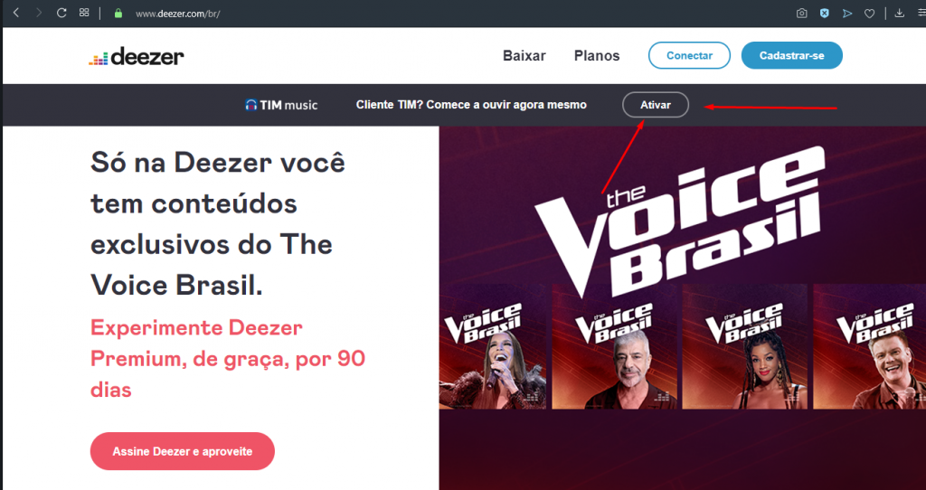 CLIQUE AQUI para ser direcionado ao site do Deezer, onde o processo de cadastro e ativação será realizado. Em seguida, toque sobre ‘ATIVAR‘.