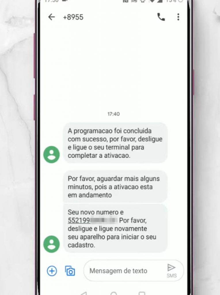 Após ter reiniciado seu dispositivo será necessário realizar uma chamada para qualquer contato, desta forma lhe será informado o novo número do seu chip. Em seguida, faça o cadastro do número ligando na operadora e informando os 11 dígitos do seu CPF!