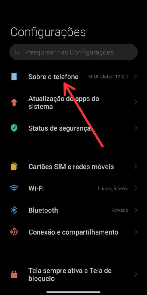 - Toque sobre a opção ‘SOBRE O DISPOSITIVO’;