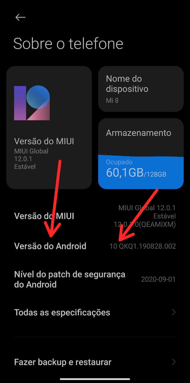 - Toque sobre a opção ‘SOBRE O DISPOSITIVO’;