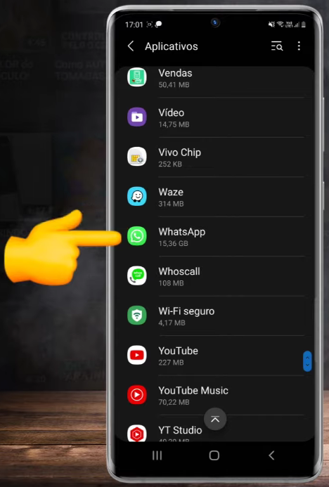 Abra às ‘CONFIGURAÇÕES’ do seu smartphone e siga até a aba dos aplicativos, em seguida localize o WhatsApp e vá em ‘BATERIA‘. Veja: