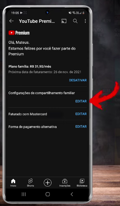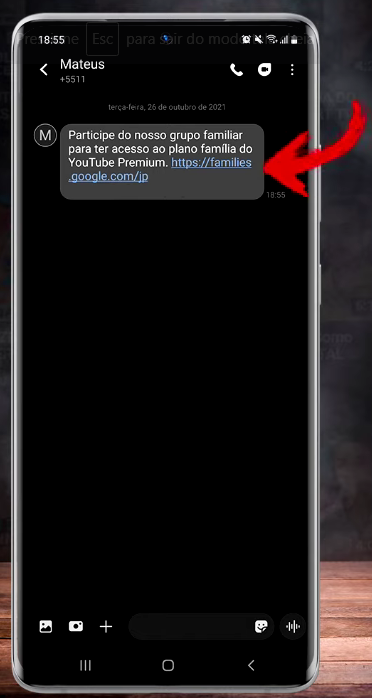 Ao contrário de outros serviços, neste o envio do link é feito via SMS, por isso é preciso que você tenha o número de telefone de quem irá entrar na sua conta familiar do YouTube Premium.