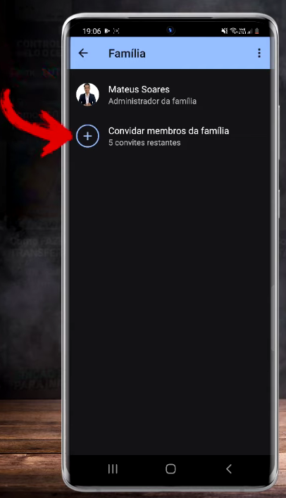 Vá até a opção’ CONFIGURAÇÕES DE COMPARTILHAMENTO FAMILIAR‘ e veja quantos convites restantes na sua conta.